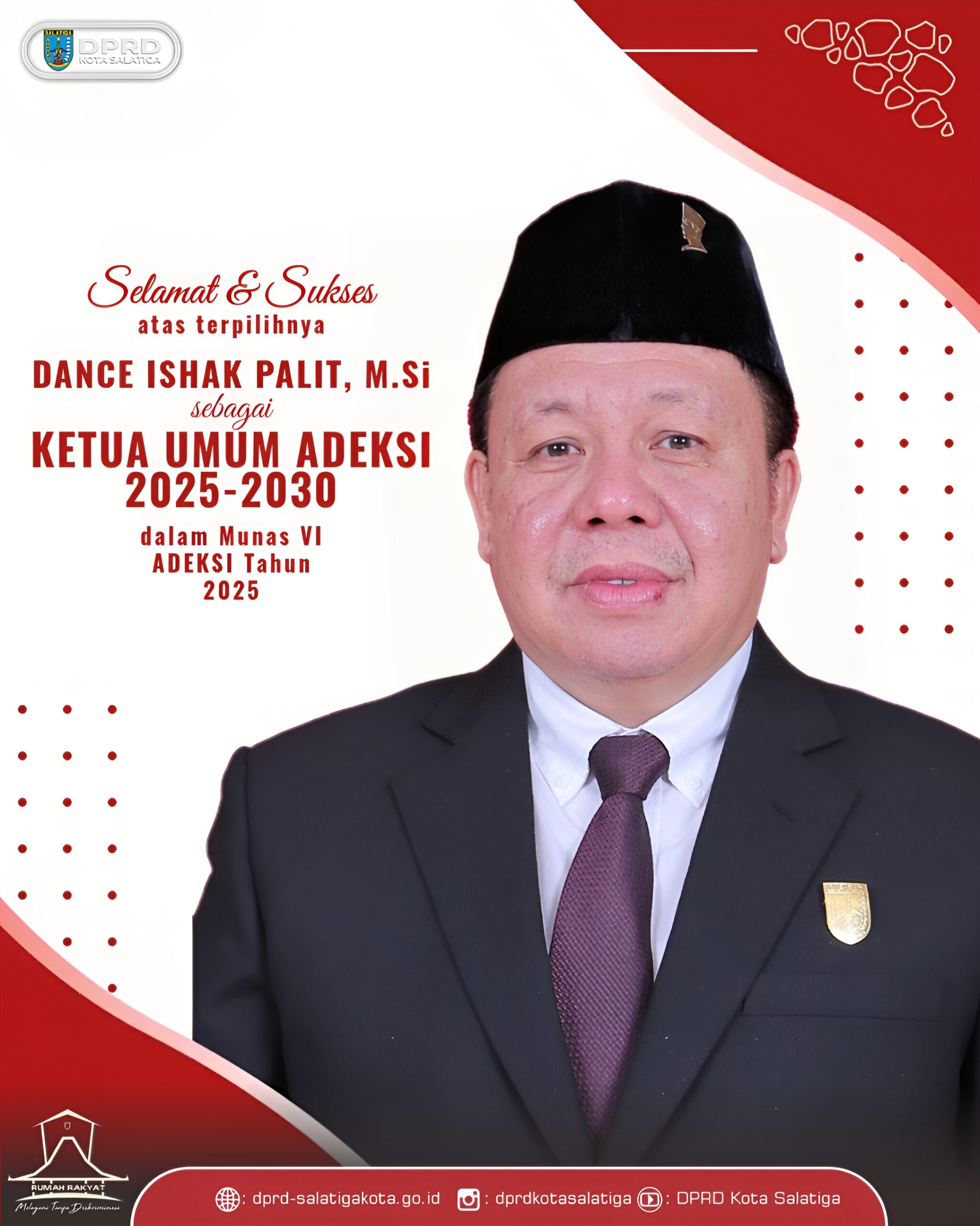 Dance Ishak Palit, M.Si yang merupakan Ketua DPRD Kota Salatiga terpilih melalui mekanisme musyawarah untuk mufakat ini akan mengemban amanat sebagai Ketua ADEKSI untuk periode 2025-2030.