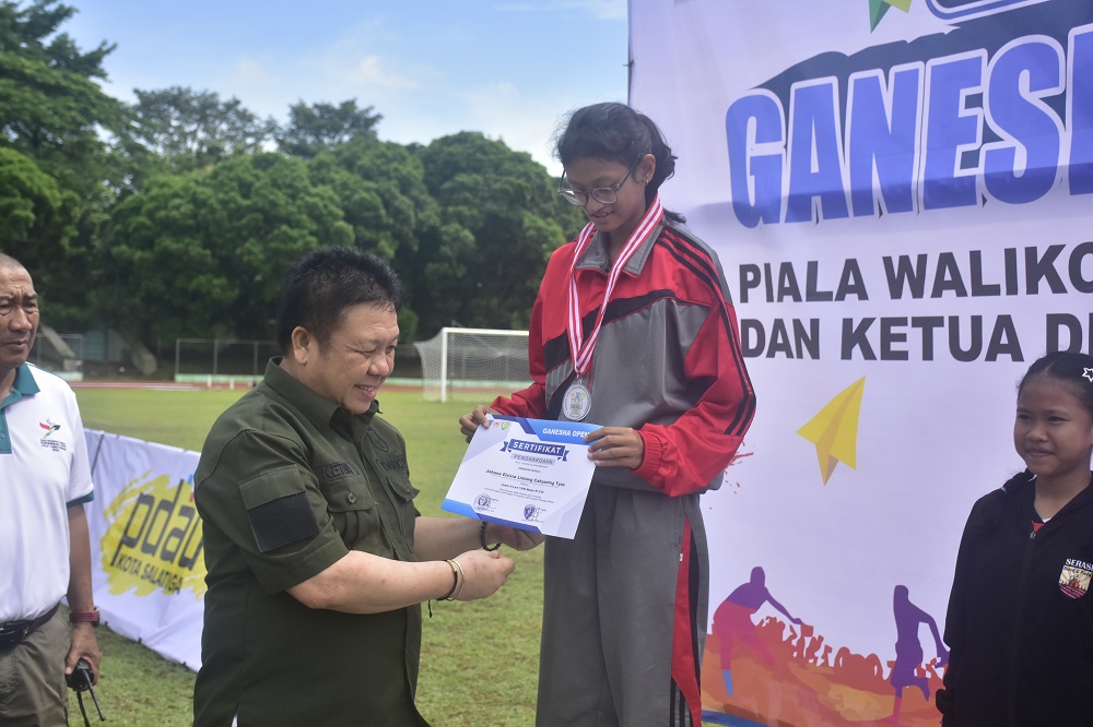 Bung Dance , panggilan akrab Ketua DPRD Kota Salatiga selain memberikan motivasi kepada peserta kejuaraan juga membuka salah satu nomor lomba dengan menembakkan pistol start dan menyerahkan medali kepada juara lomba pada salah satu nomor atletik yang dipertandingkan.