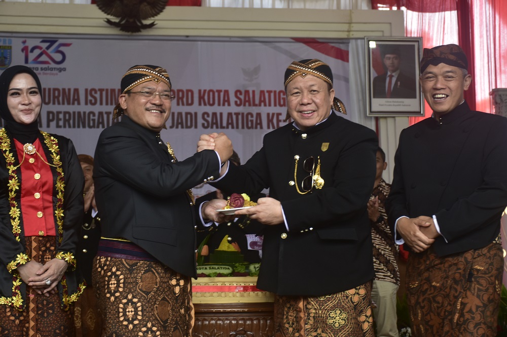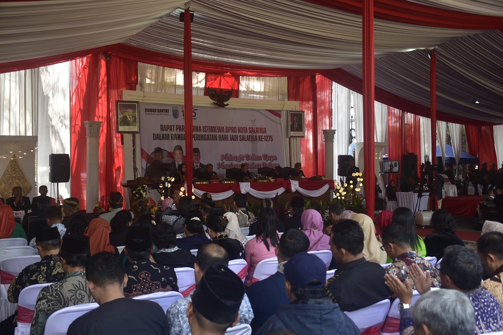 Dewan Perwakilan Rakyat Daerah (DPRD) Kota Salatiga mengadakan Rapat Paripurna Istimewa dalam rangka memperingati Hari Jadi ke-1.275 Kota Salatiga berlangsung di Alun-alun Lapangan Pancasila, Kota Salatiga, pada Kamis (24/07/2025).