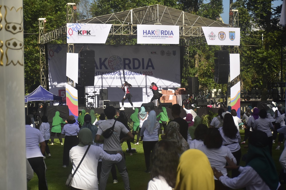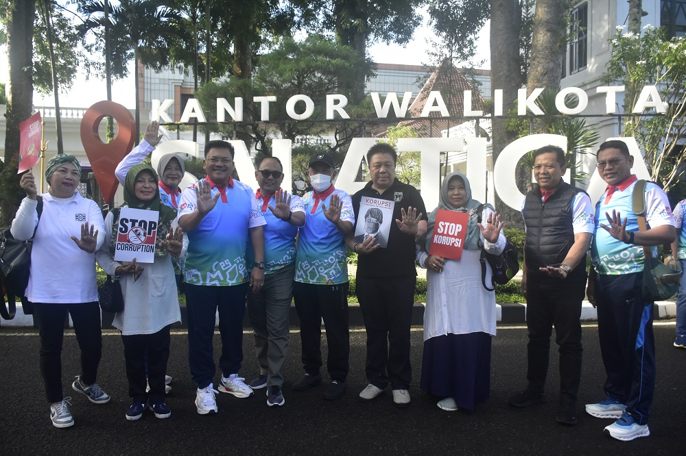 Dalam kegiatan tersebut, para peserta juga membawa poster berisi imbauan antikorupsi, seperti ajakan untuk stop korupsi serta mendorong masyarakat melaporkan apabila menemukan dugaan praktik yang mengarah pada tindakan koruptif.